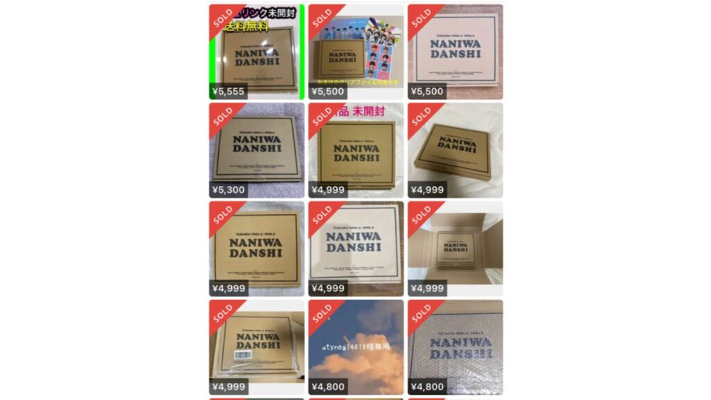 例えば、定価2,600円のなにわ男子のカレンダーが発売してすぐに5,000円前後まで高騰していますがこれも再販の要望がありましたが再販はされておらず依然として希少価値のある商品となっています。