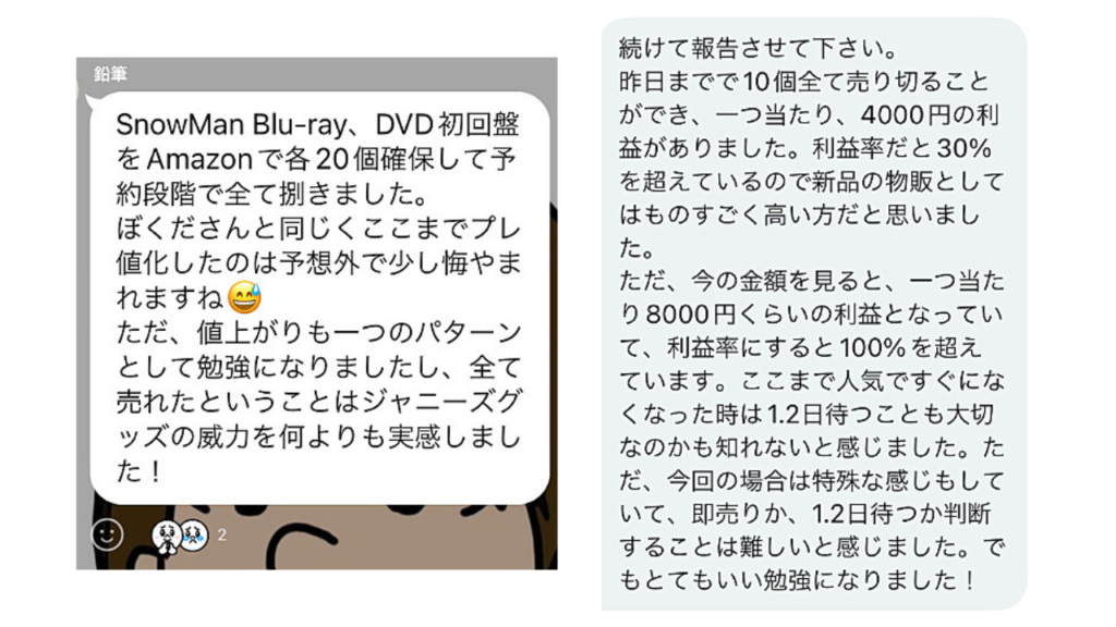 普通のせどり・転売の場合だと利益率は20%〜30%前後だと思いますがジャニーズグッズは断然利益率が高いです。
