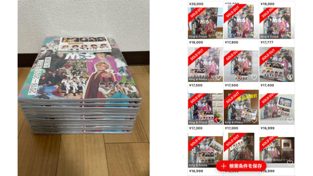 ジャニーズにはたくさんのグループが存在し、それぞれのグループでたくさんの商品が発売されますので仕入れる商品が見つからないということはありません。それらの商品の内、条件にあった商品を仕入れていきます。