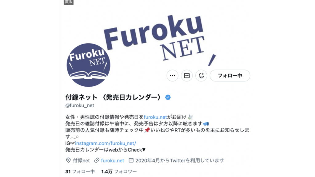 「付録ネット」さんは付録付き雑誌の最新刊の情報、予約開始日、在庫切れ商品の予約再開など付録付きの雑誌の情報をメインで発信しているアカウントです。