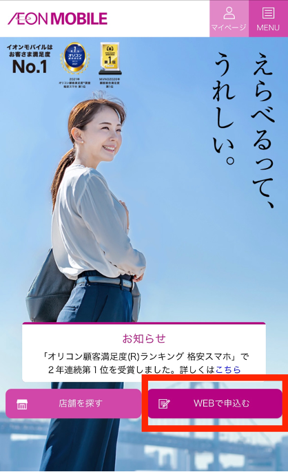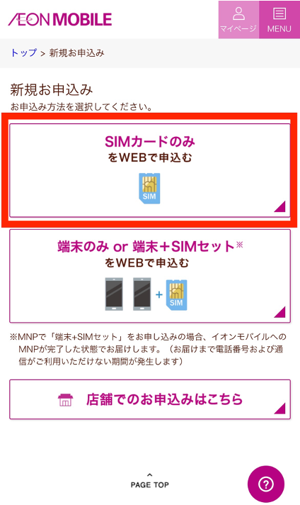 実際にイオンモバイルで契約するための手順を画像付きで解説していきます。