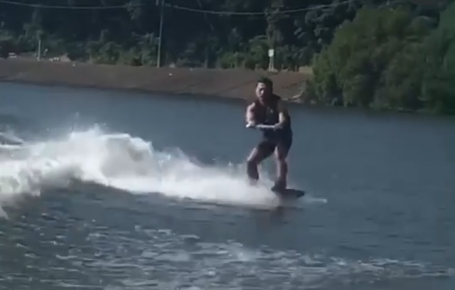 ボートに引っ張られた瞬間、バランスを崩して水に落ちる。これを何度か繰り返します。